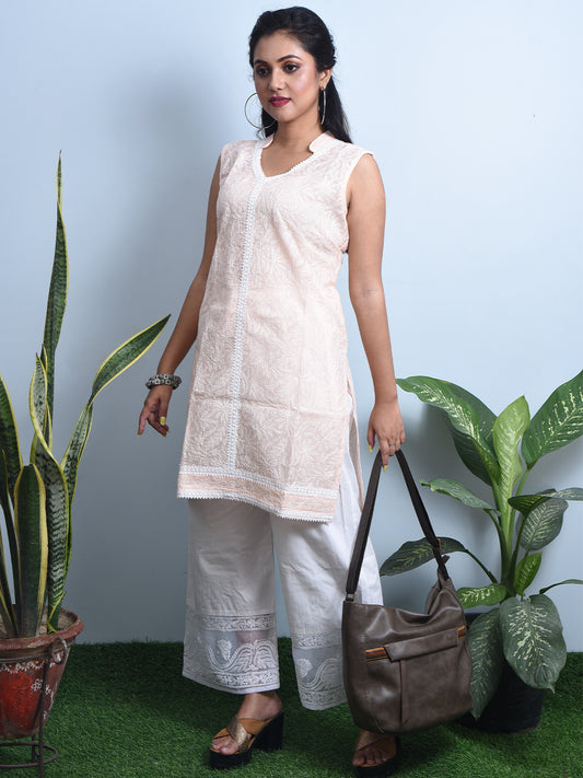 'Pink Lotus' Fusion Jaipuri-Chikankari Kurta-Pant Set