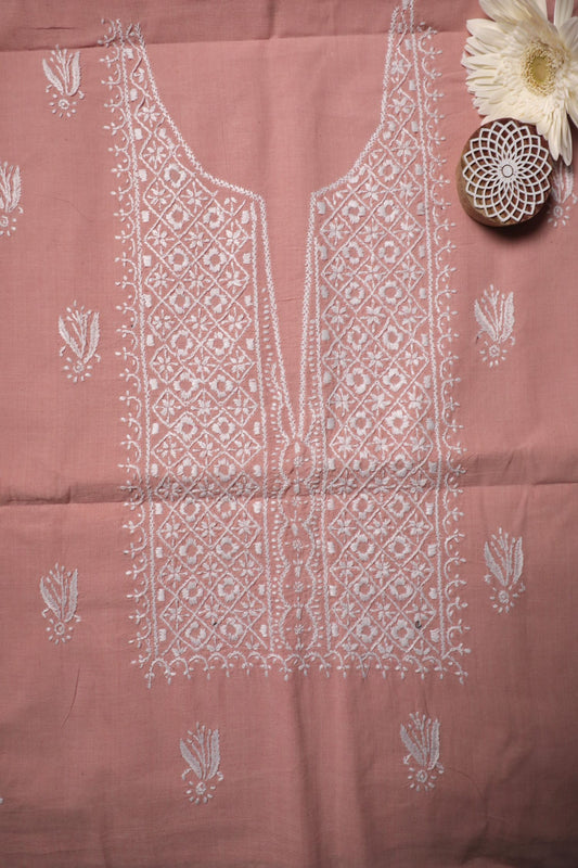 Dusky Apricot Mul Cotton Unstitched Chikankari Suit Set