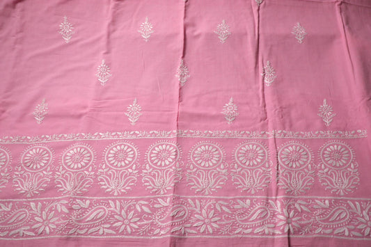 Lotus Pink Cotton Unstitched Chikankari Kurta Pant Set