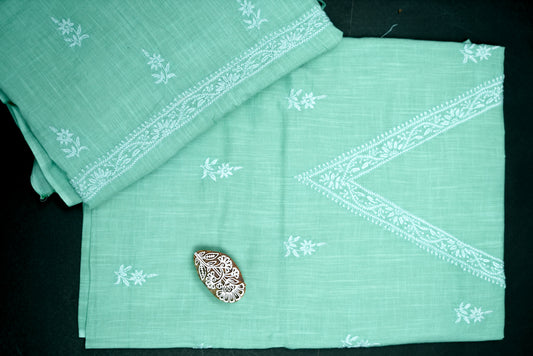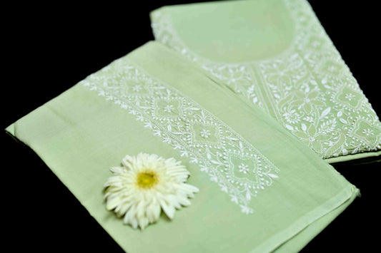 'Basil Breeze' Green Cotton Unstitched Chikankari Kurta Pant Set