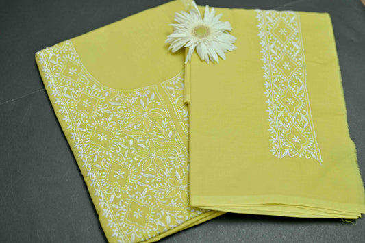 Golden Lemongrass Cotton Unstitched Chikankari Kurta Pant Set