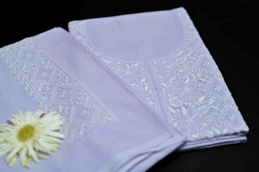Lilac Mist Cotton Unstitched Chikankari Kurta Pant Set