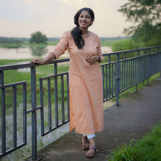 'Sunset Orange' Designer Mul Cotton Chikankari Long Kurti
