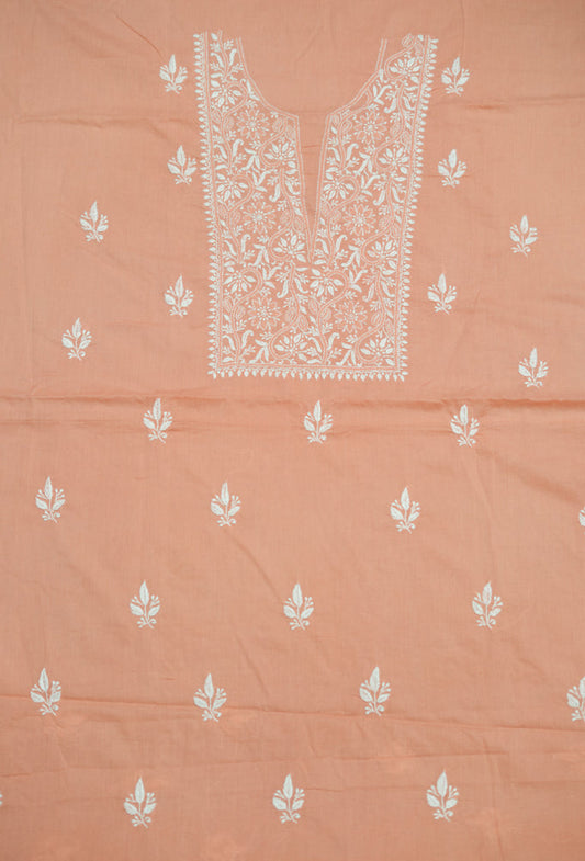 Cozy Peach Cotton Unstitched Chikankari Kurta fabric