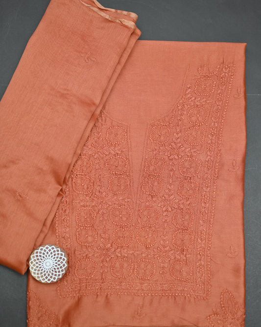 'Clay Orange' Chanderi Unstitched Chikankari suit set
