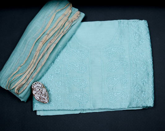 'Ocean Whisper' Light Teal Chanderi Unstitched Chikankari suit set