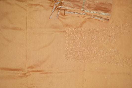 'Amber Gold' Chanderi Unstitched Chikankari suit set