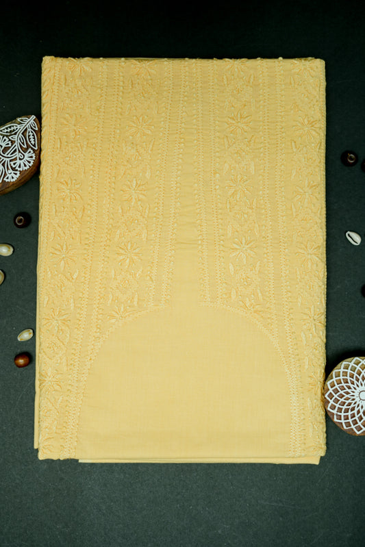Cheerful Mul Yellow Cotton Unstitched Chikankari Kurta Pant Set