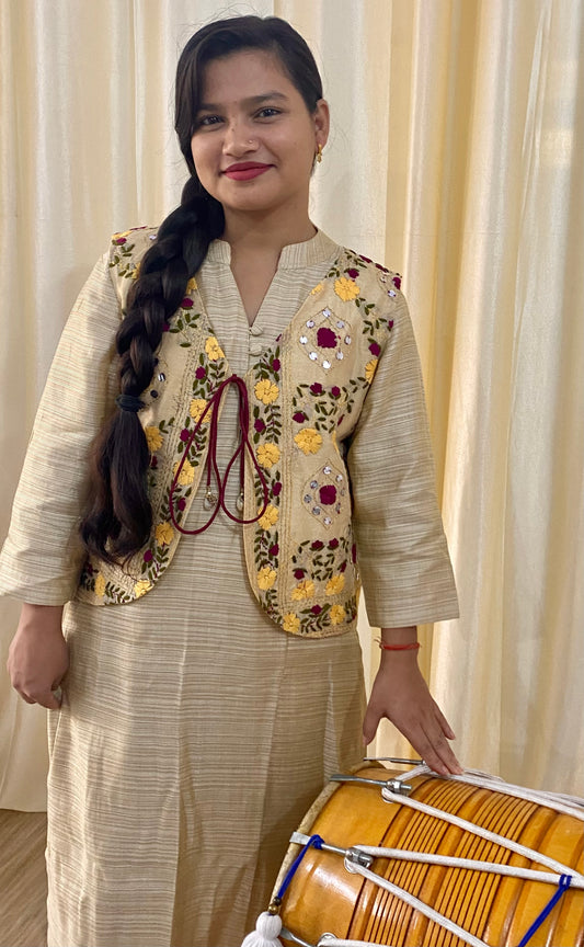 Vibrant Multicolor Phulkari Hand embroidery Festive Koti - Large size