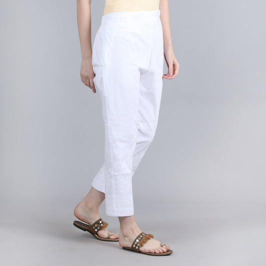 Pure Georgette Dyeable Straight White Chikankari Palazzo