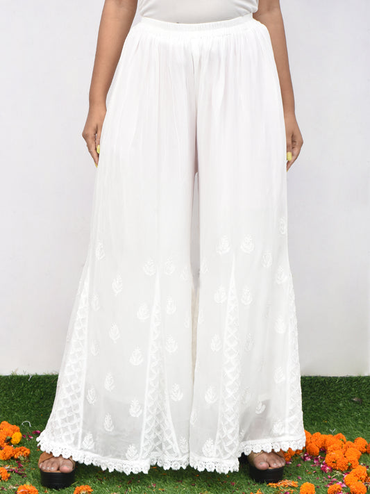 Pure Georgette Dyeable Designer White Chikankari Palazzo