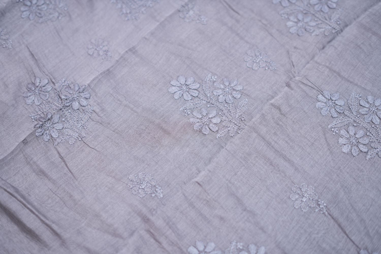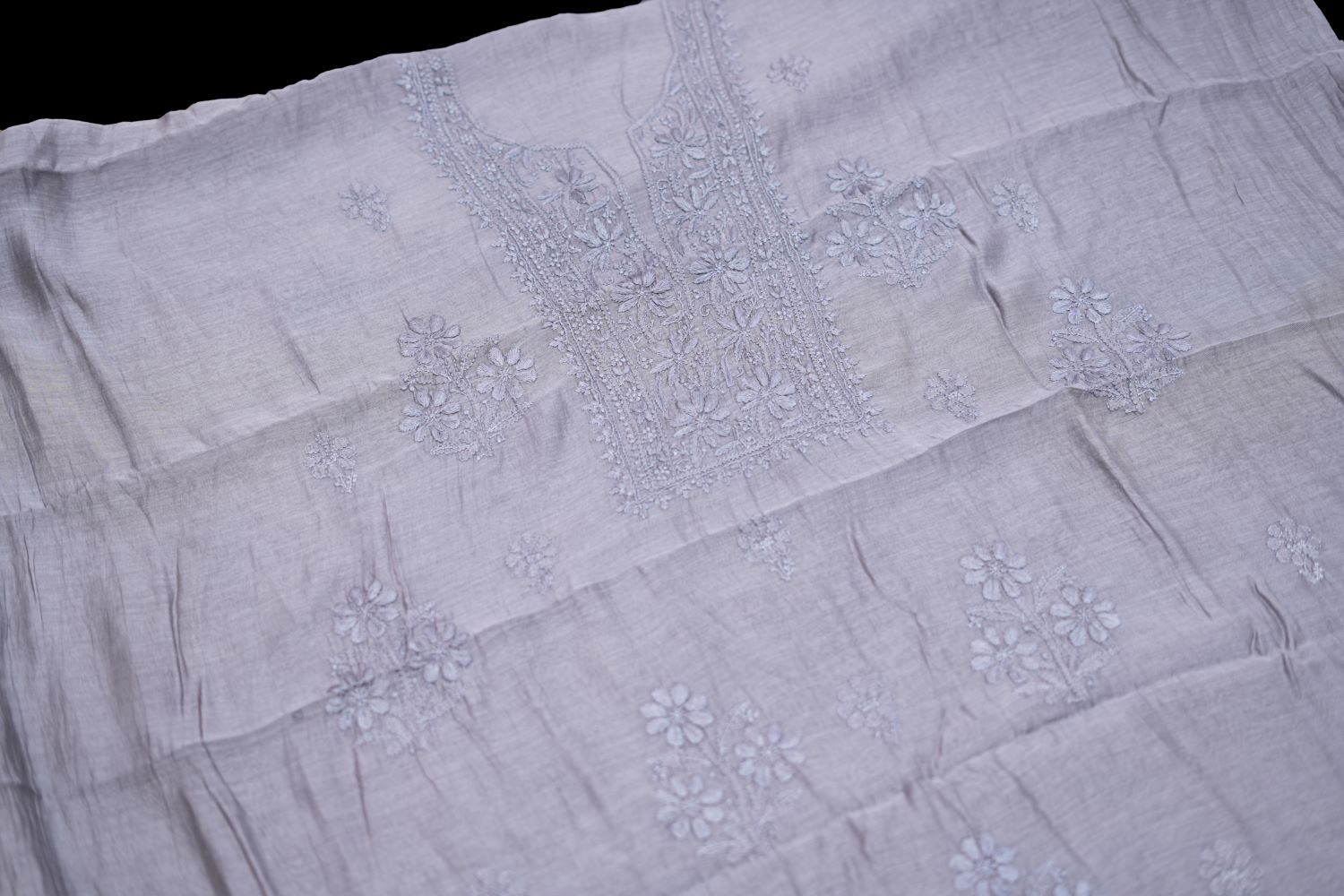 'Ash Lavender' Mul Chanderi Chikankari Unstitched Suit Set