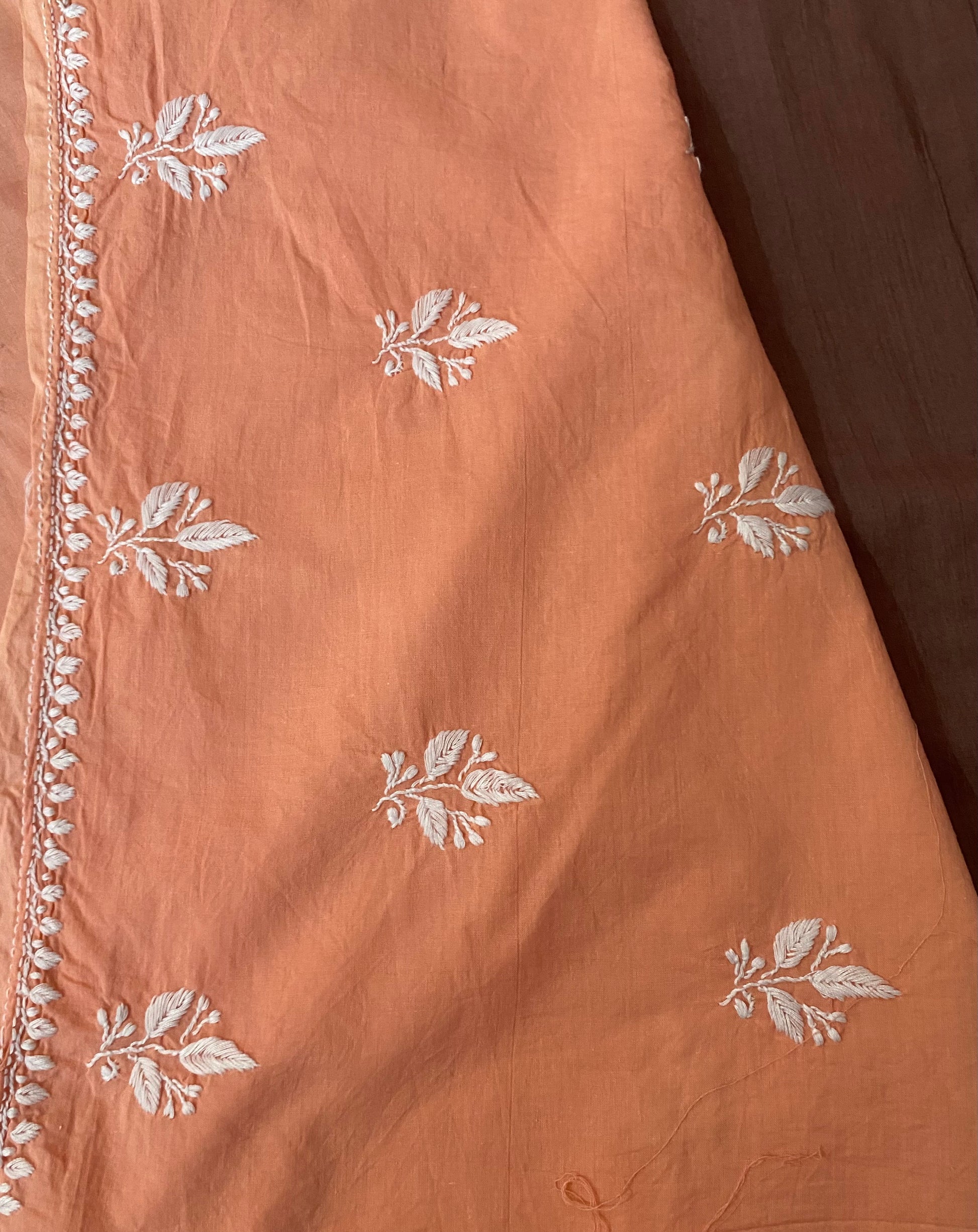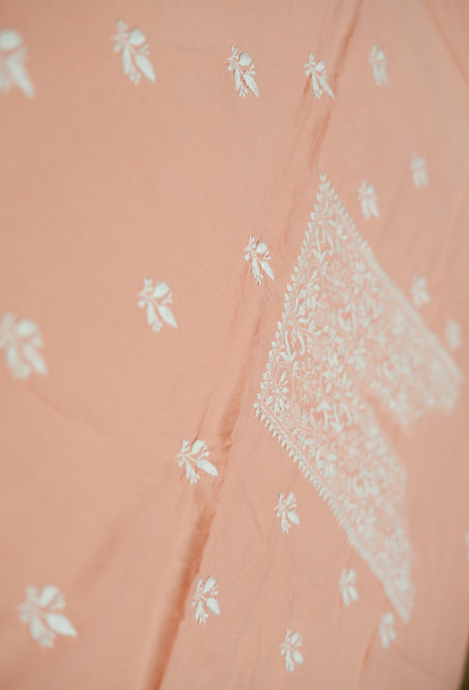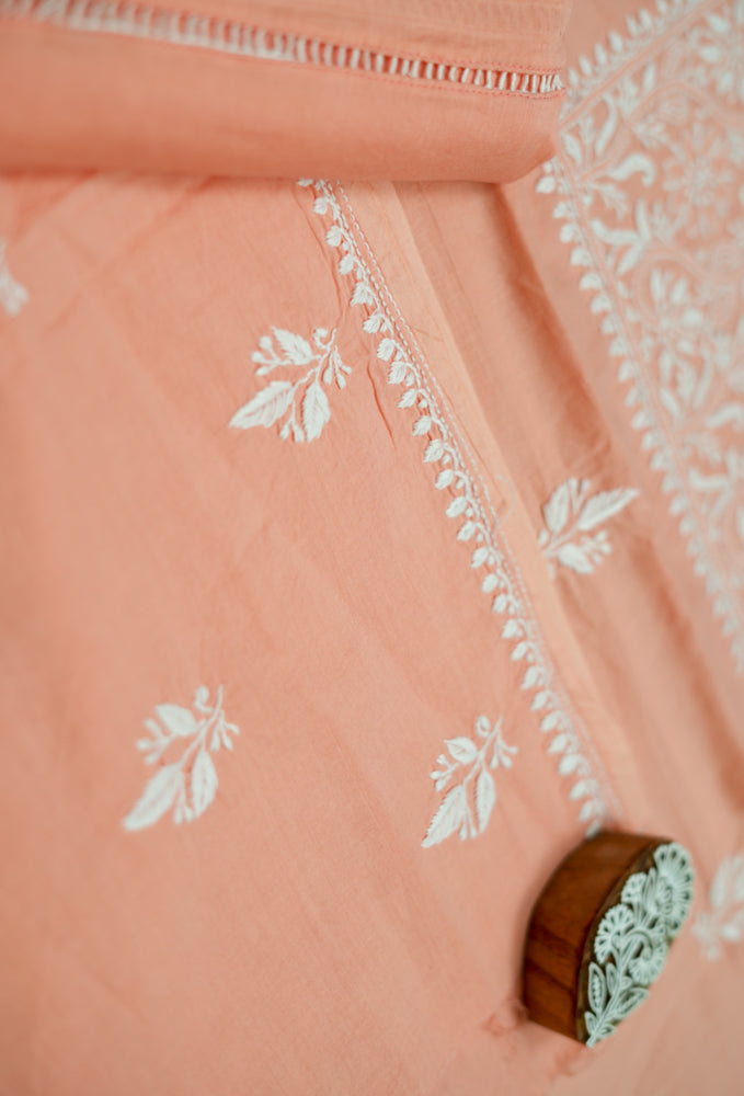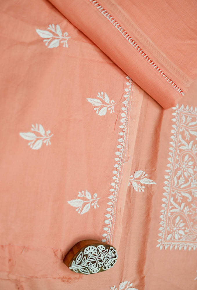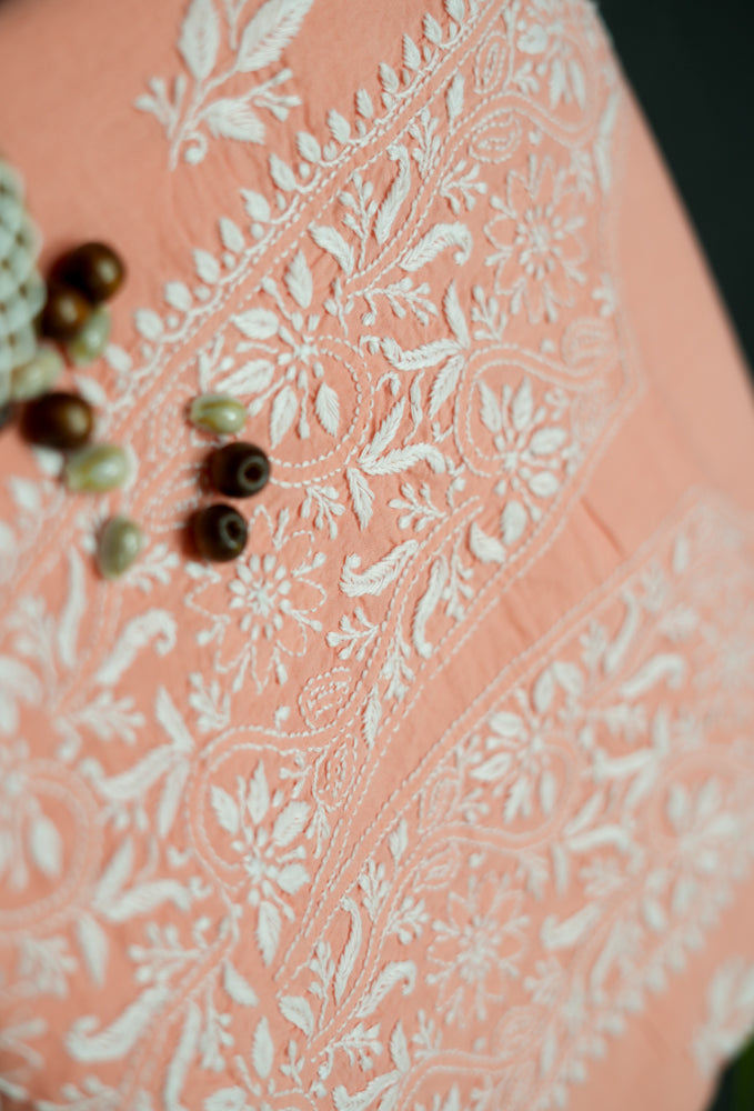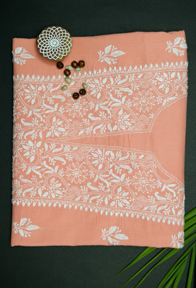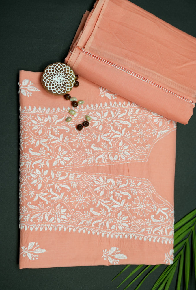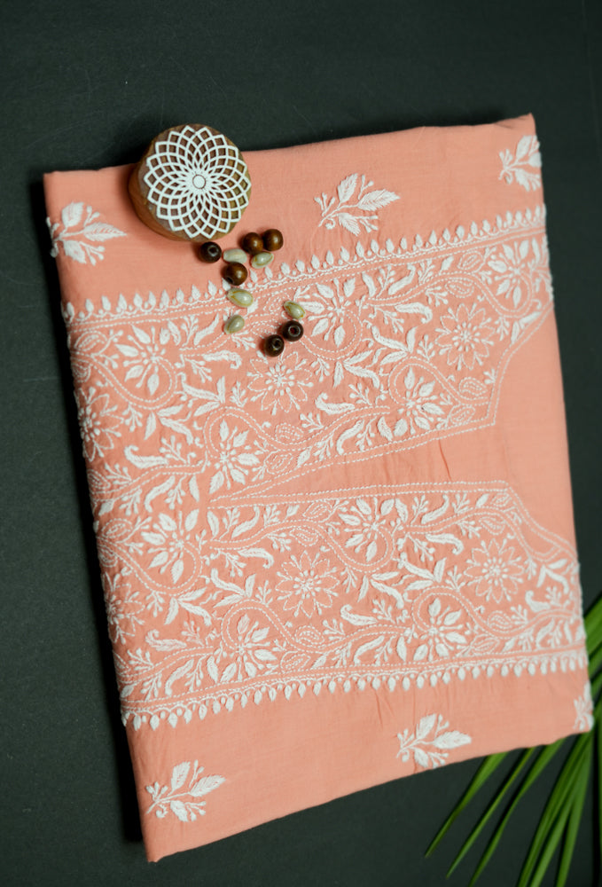Cozy Peach Cotton Unstitched Chikankari Kurta fabric