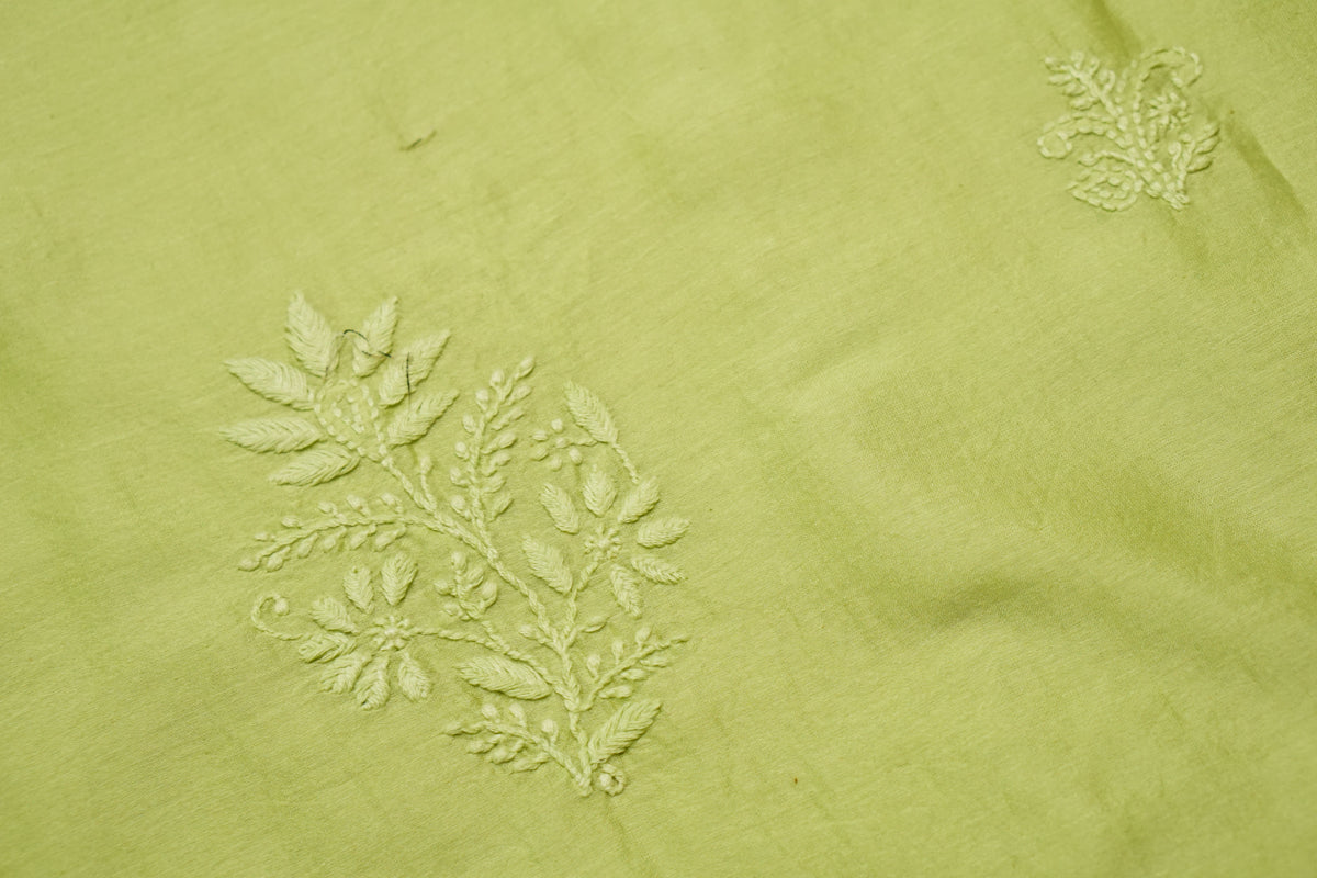 Heritage Work: Authentic Lucknow Chikankari hand embroidery. Due to the artisanal nature of the product, embroidery motifs may vary slightly from the image, but the coverage area will be the same.