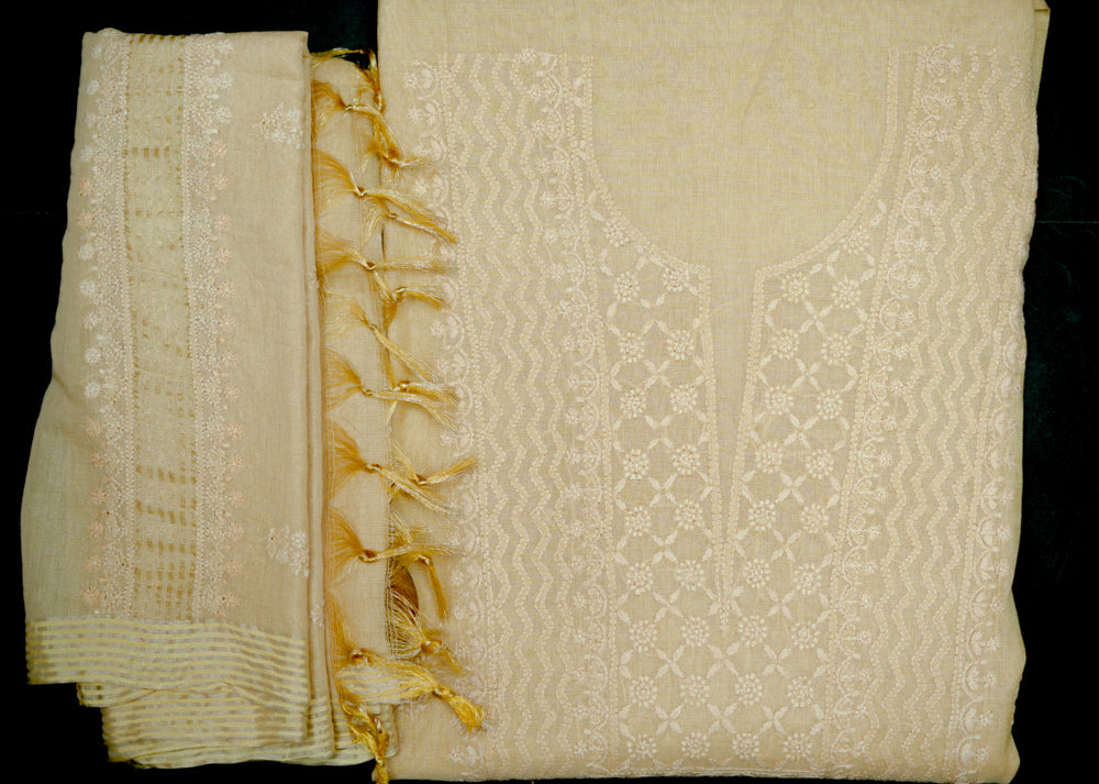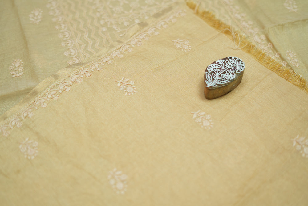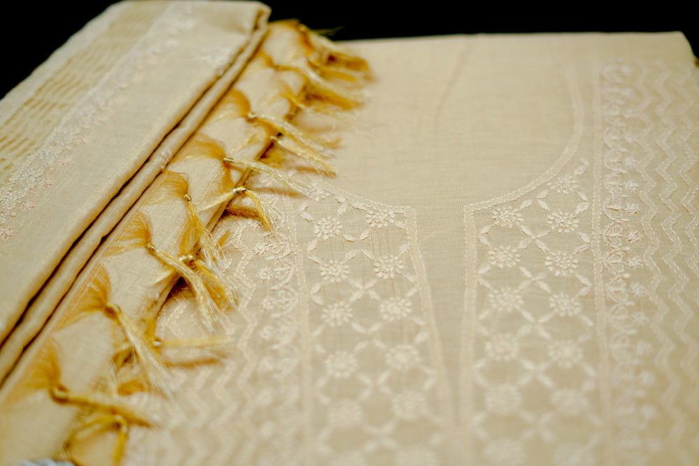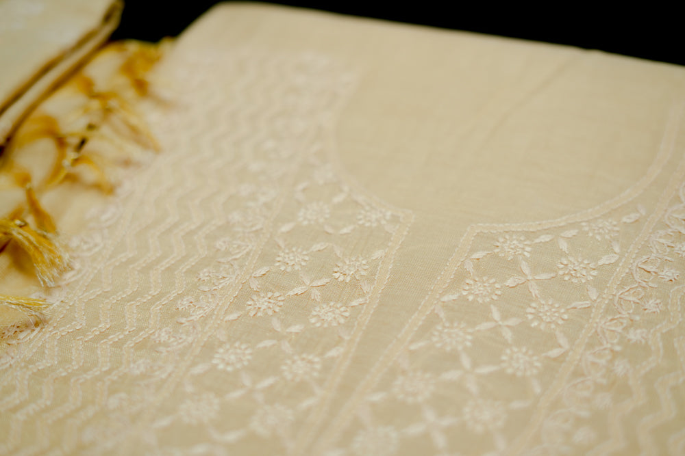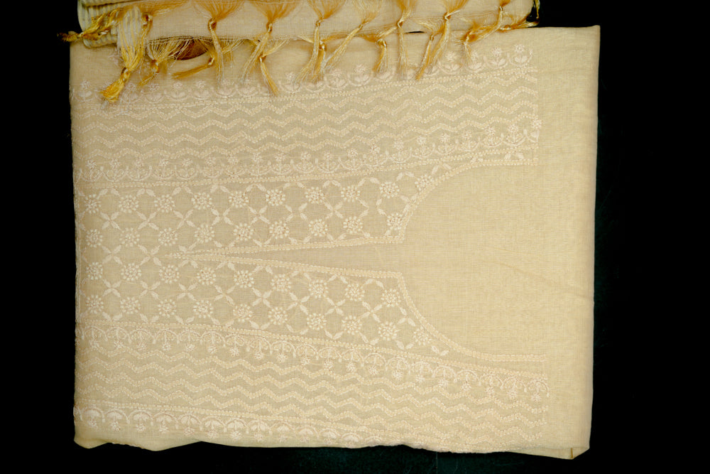 Ivory Tissue Chanderi Unstitched Chikankari Suit set