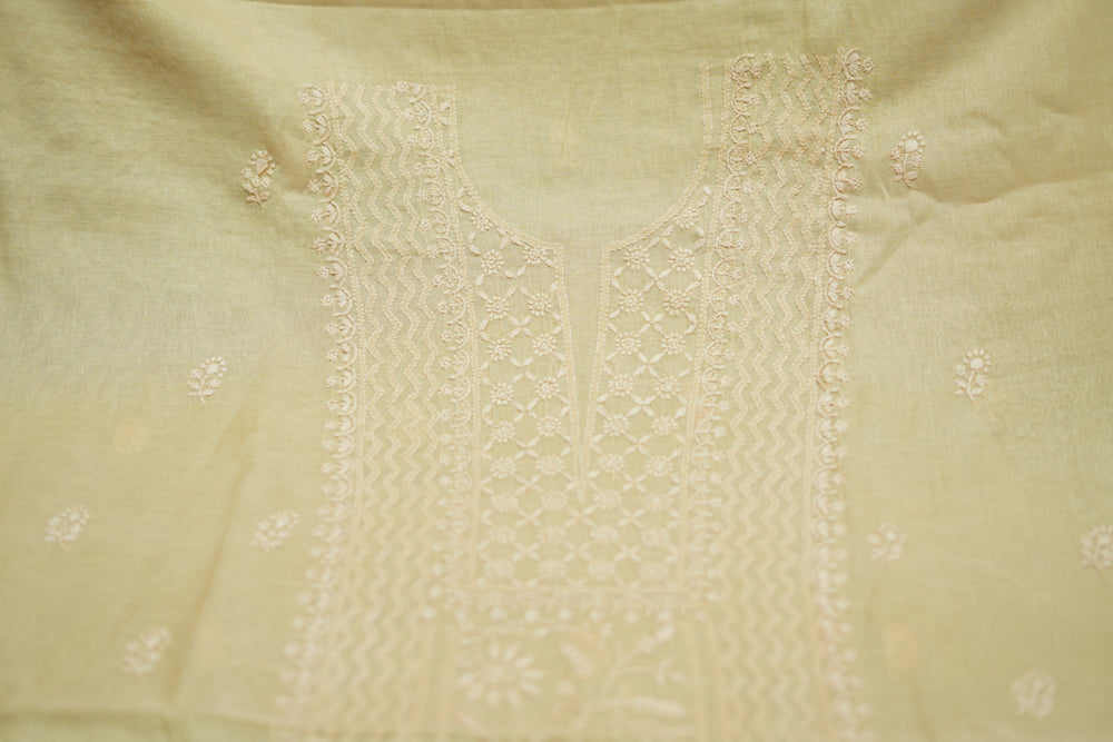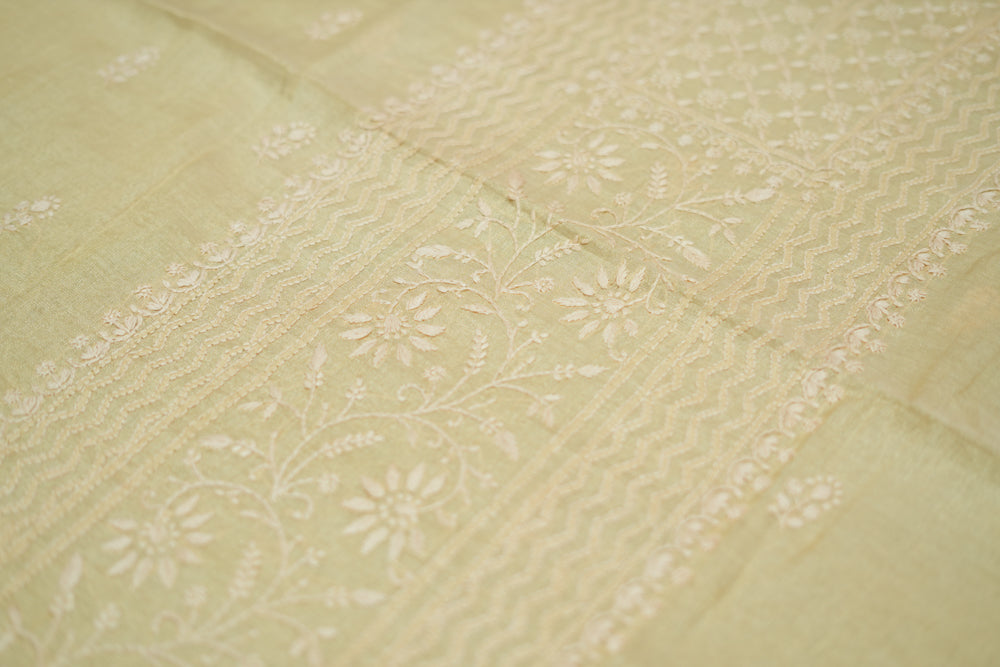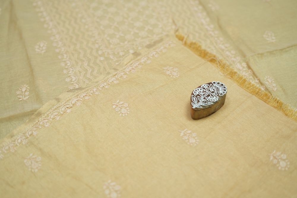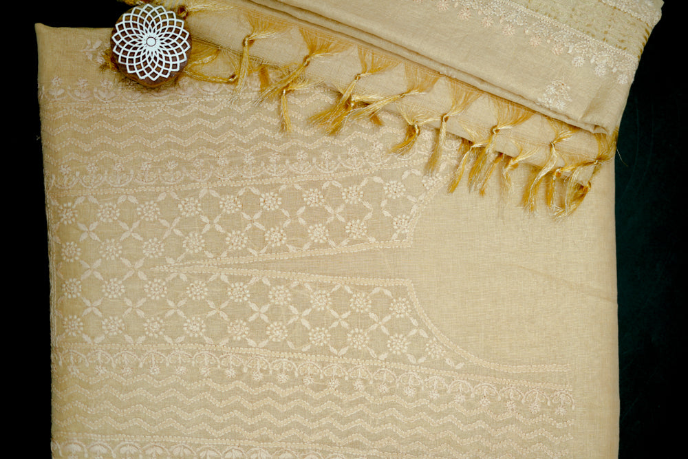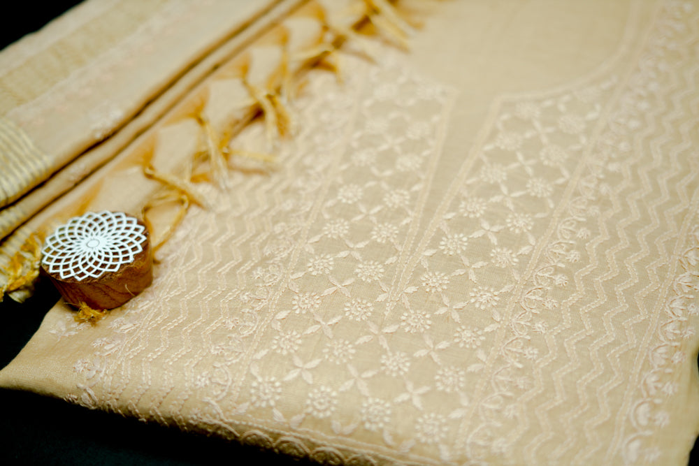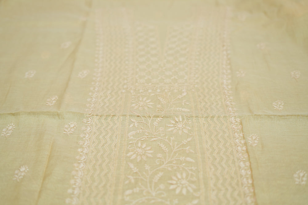 Ivory Tissue Chanderi Unstitched Chikankari Suit set