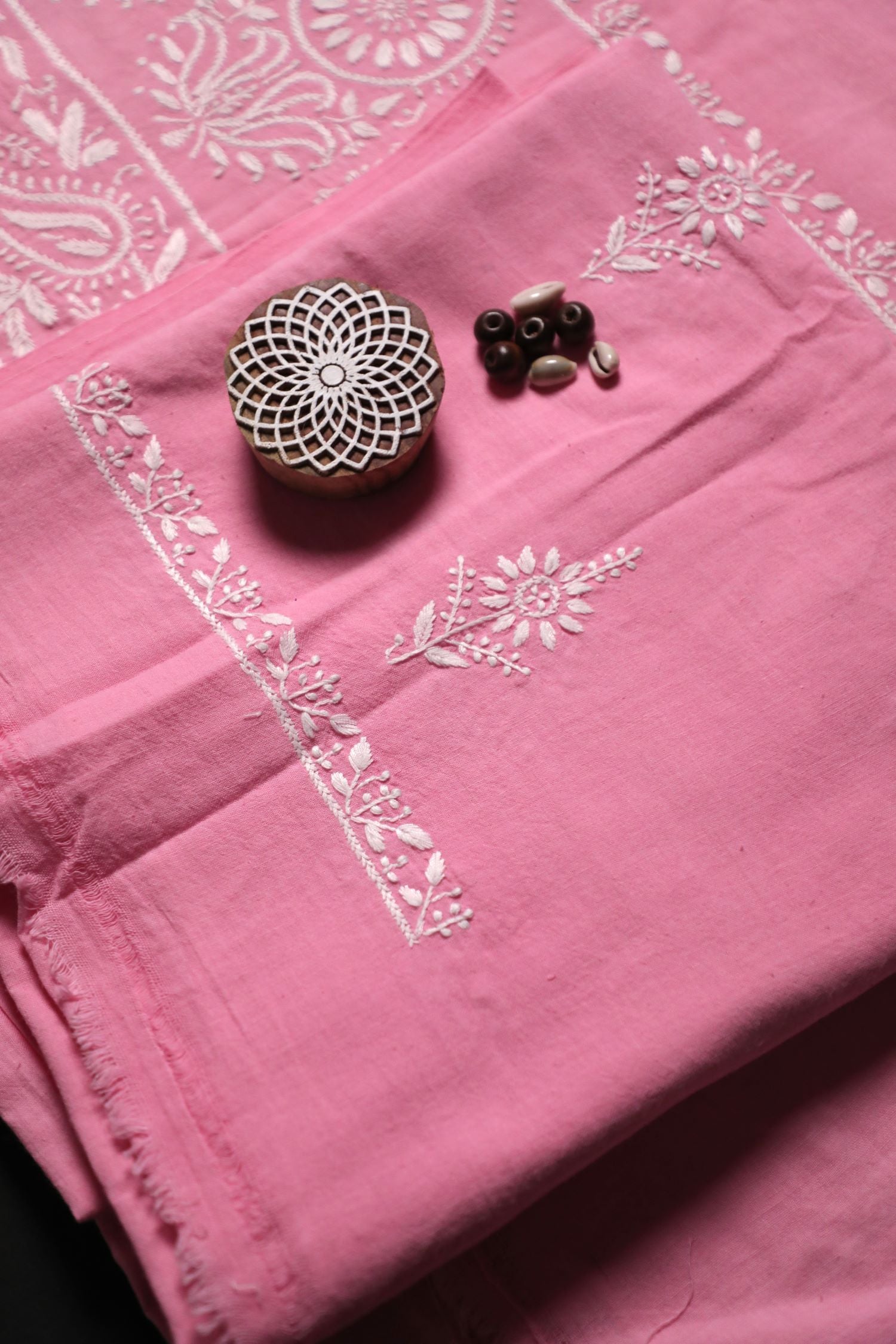 Khadi Pink South Cotton Unstitched Chikankari Kurta Pant Set