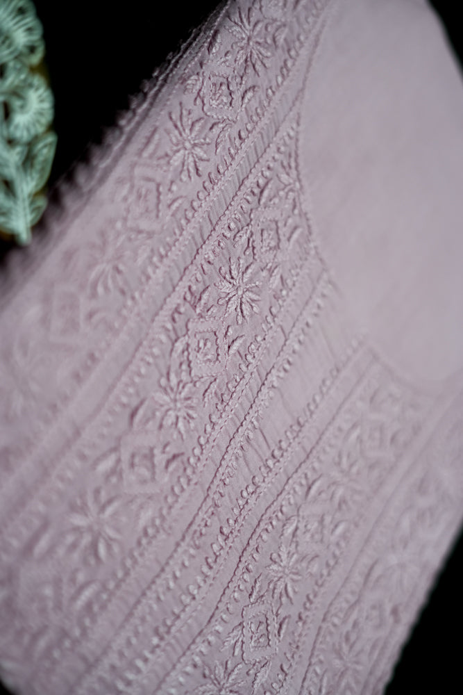 'Lavender Pink' Mul Cotton Unstitched Chikankari Suit set