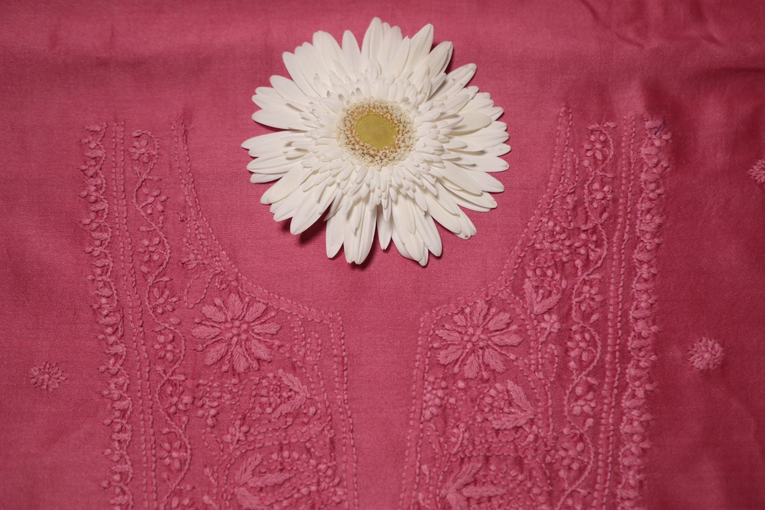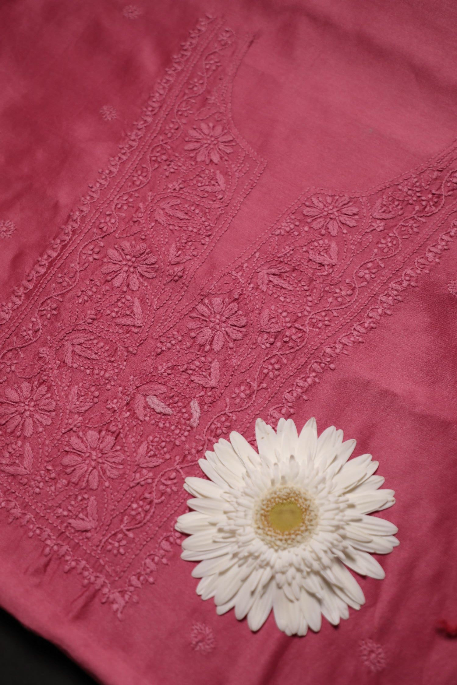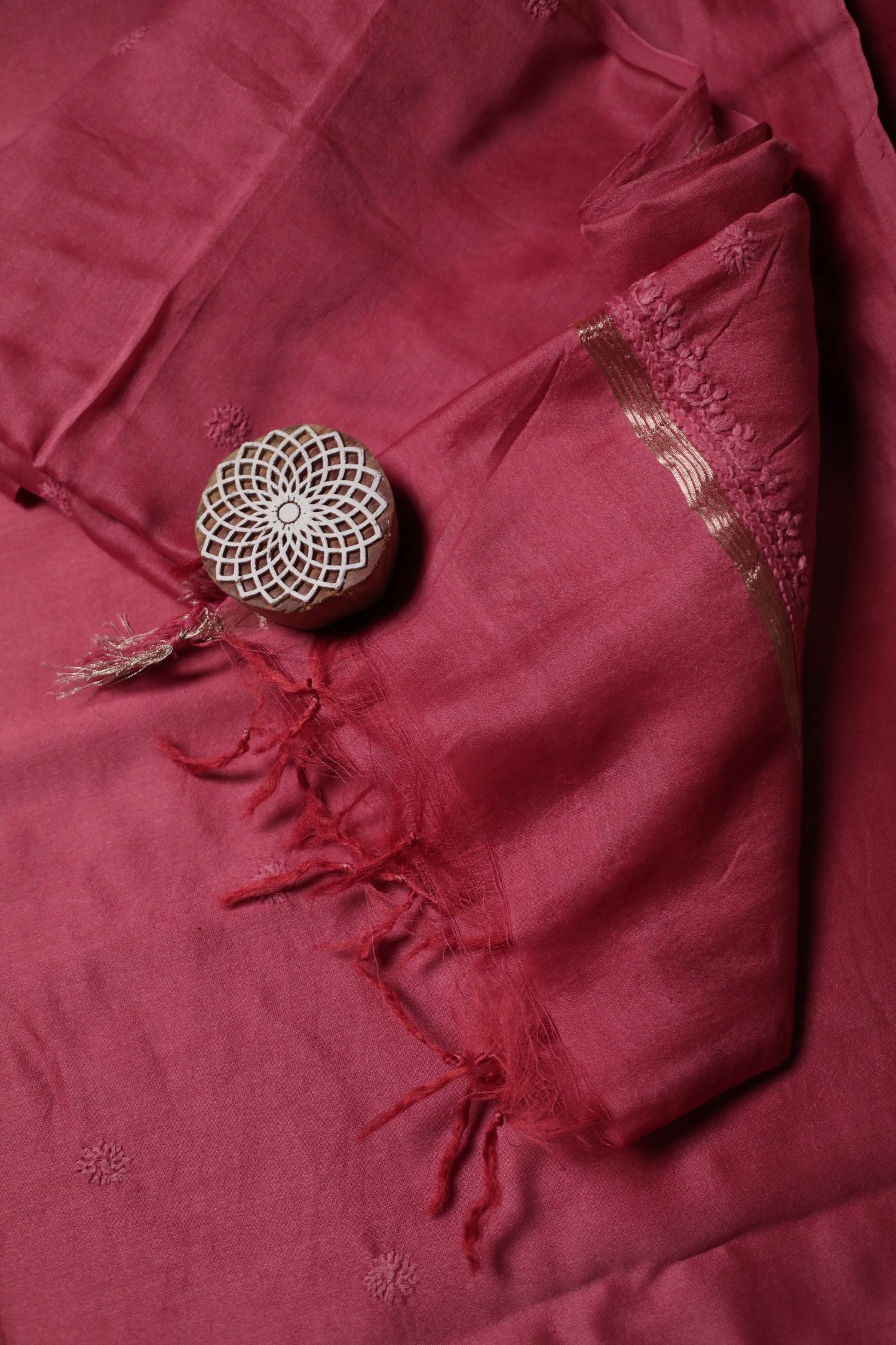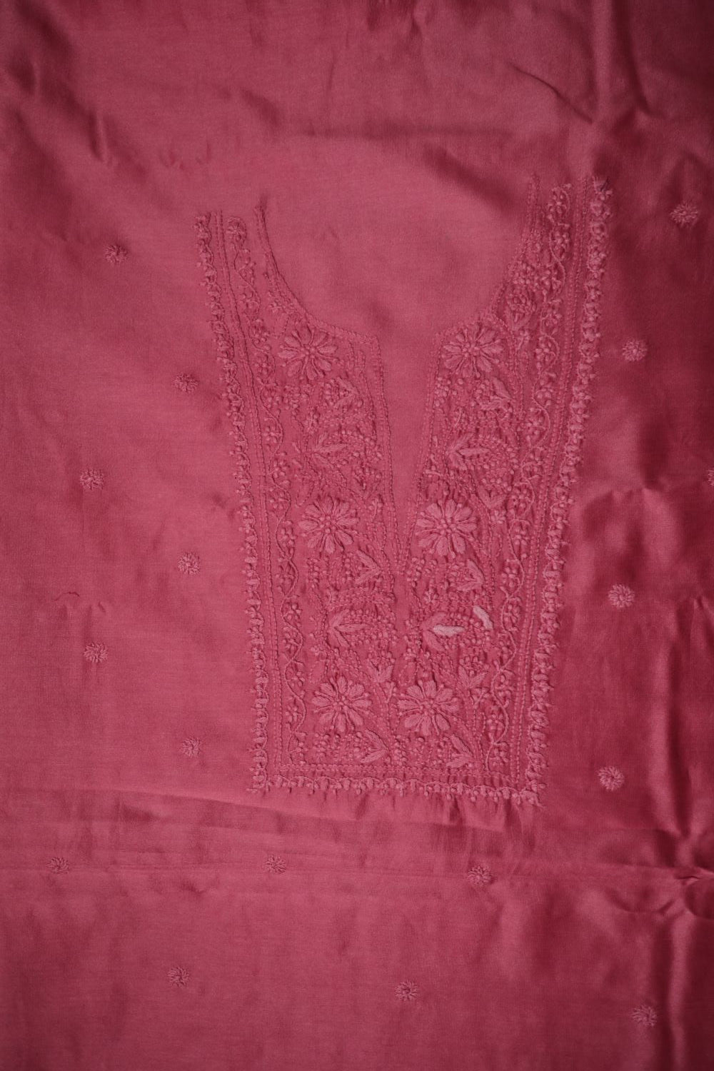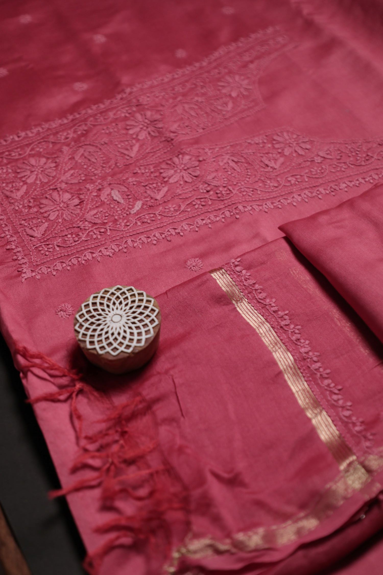 Mauve Pink Chanderi Unstitched Chikankari Suit Set
