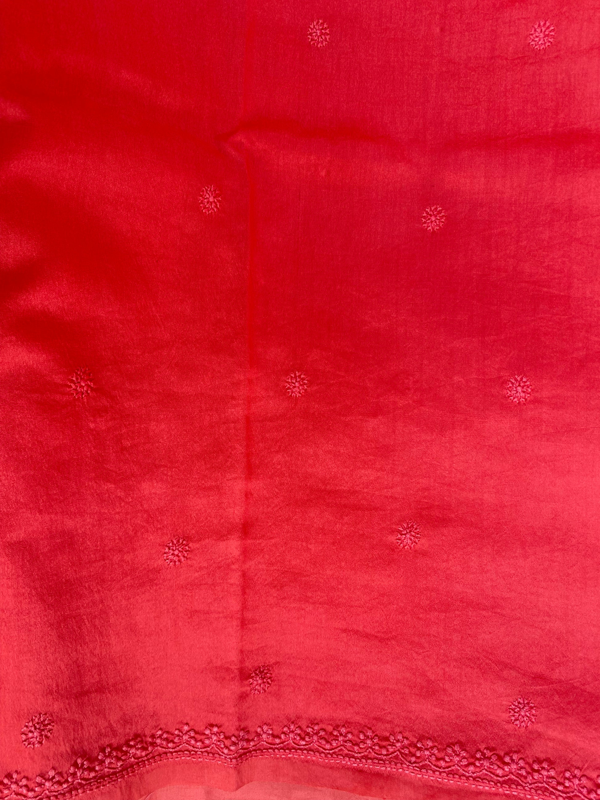 Raspberry Pink Chanderi Unstitched Chikankari Suit Set