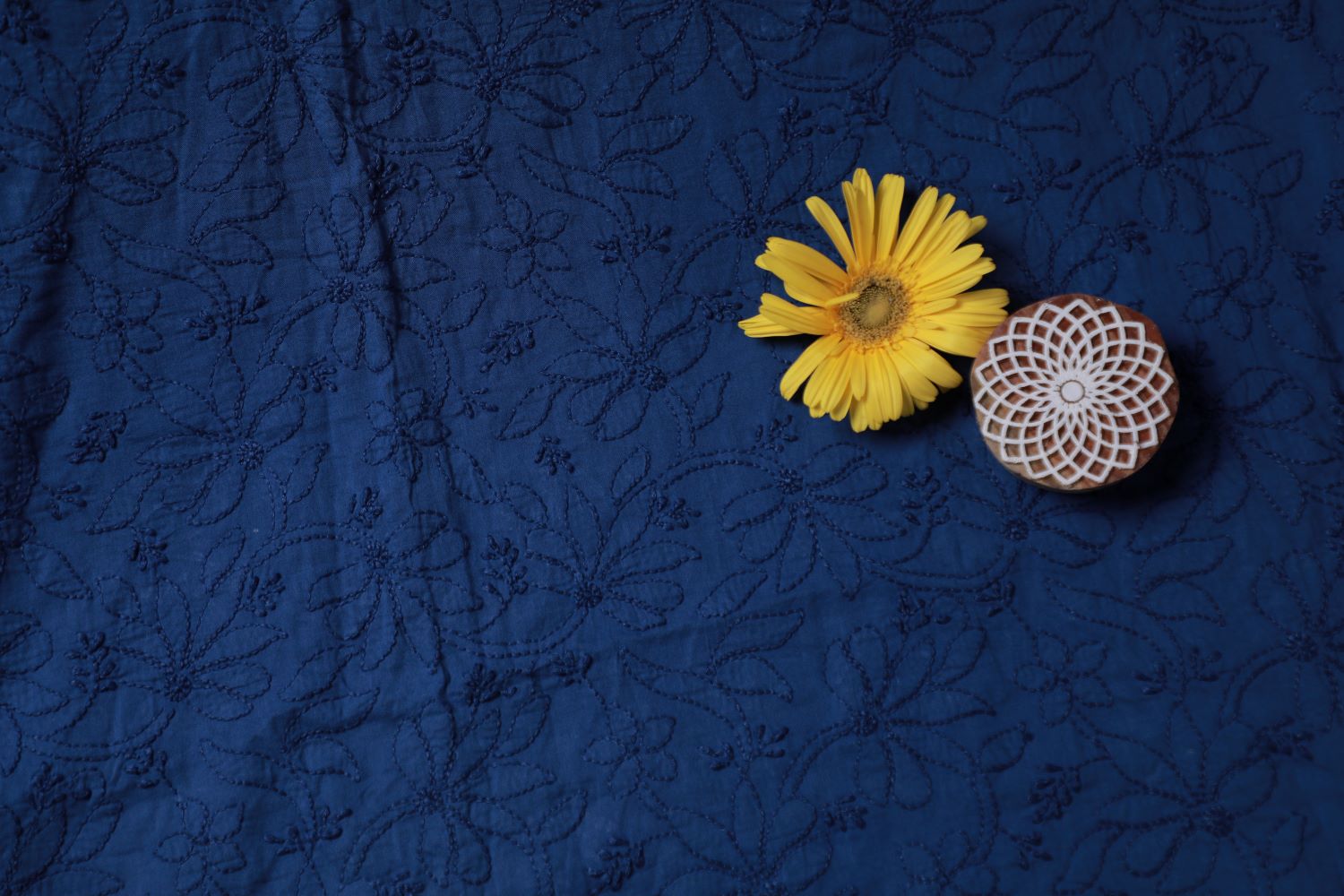 'Royal Blue' Mul Cotton Chikankari Kurta Fabric
