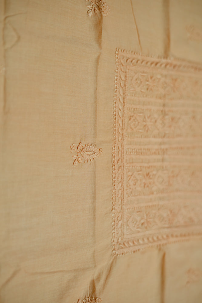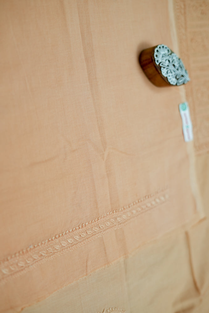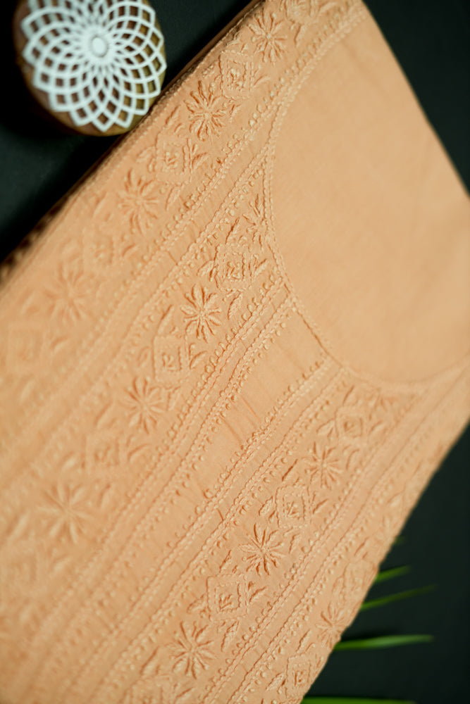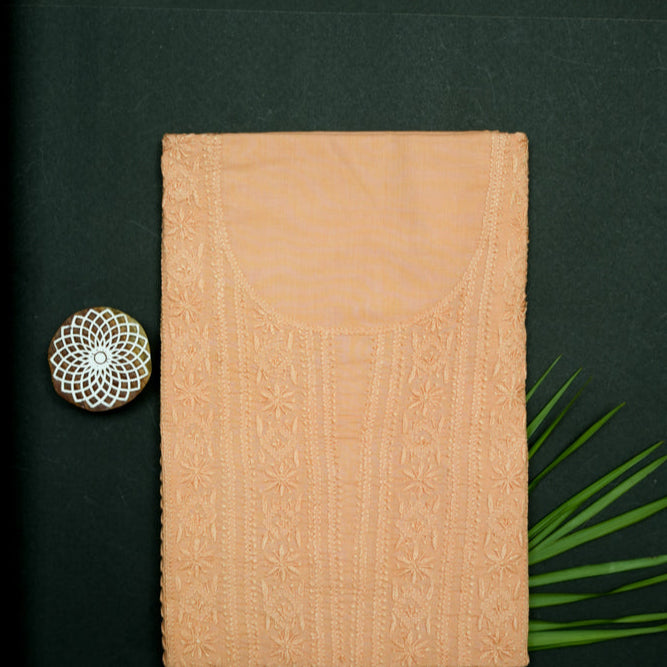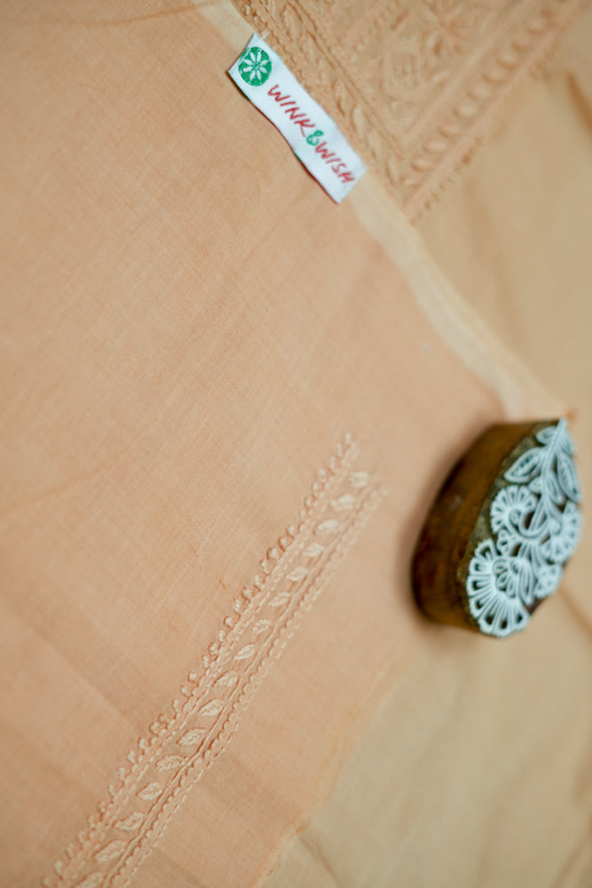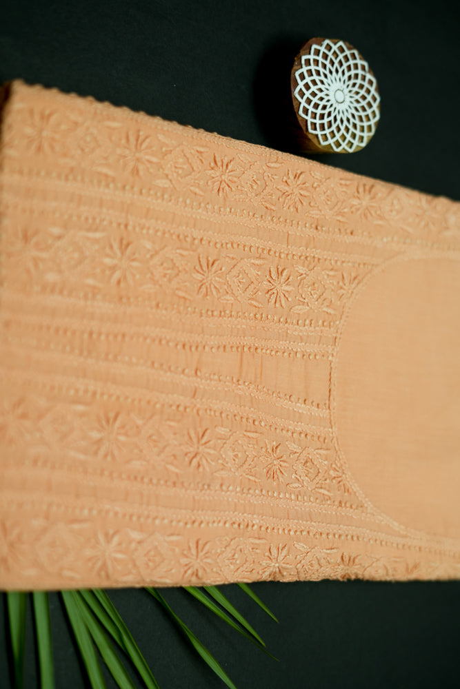 'Sunset Peach' Mul Cotton Unstitched Chikankari Suit set