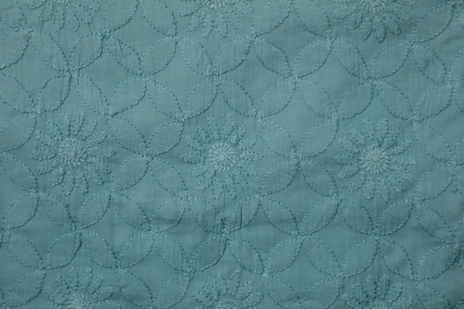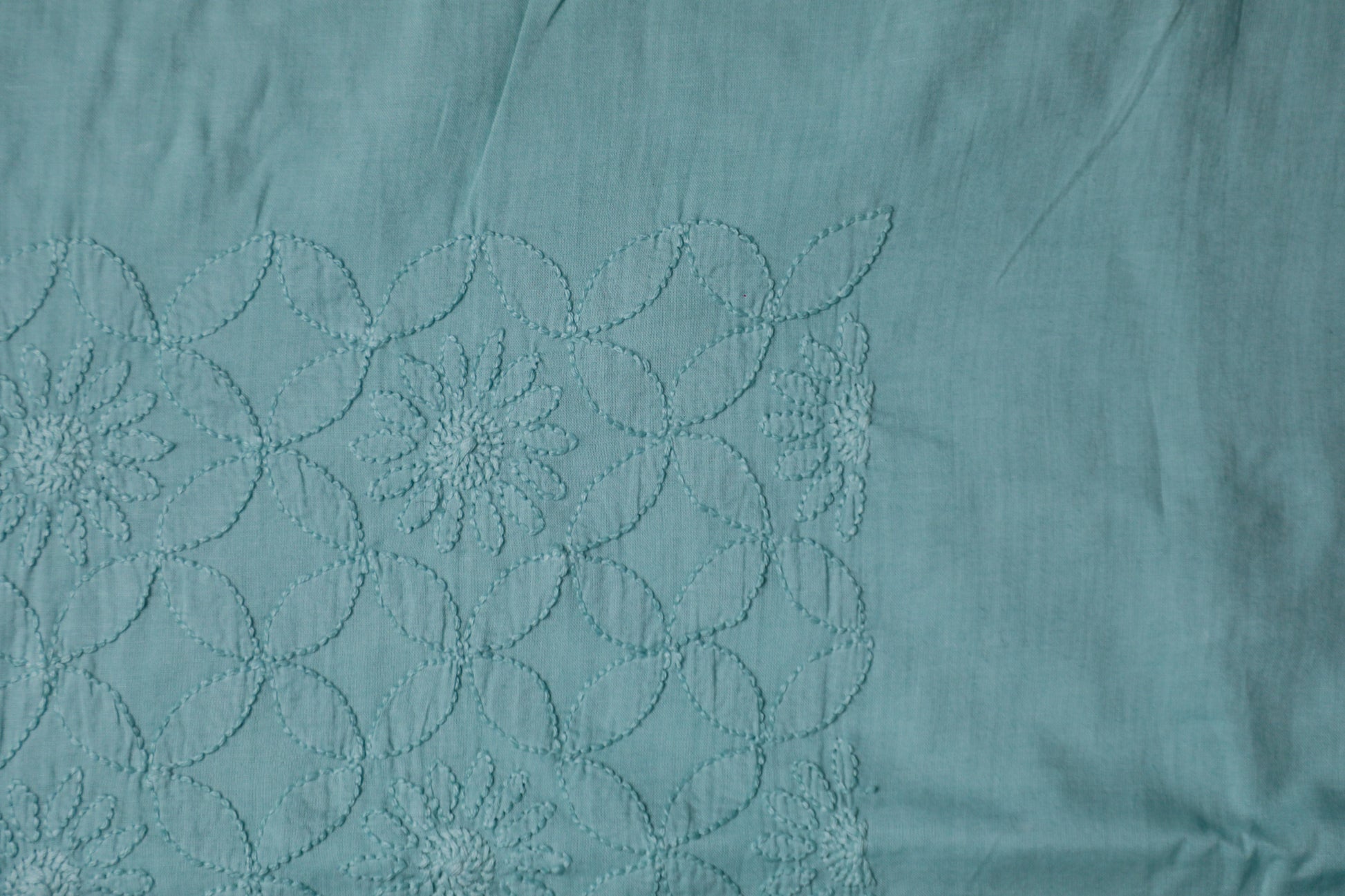 Teal Blue Mulmul Cotton Fine embroidery Unstitched Chikankari Kurta fabric